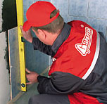Требования к подготовленным для облицовки основаниям: поверхности бетонные и кирпичные с полноразмерными швами должны иметь насечку (поверхности стен, выложенные в пустошовку, не требуют насечку); любые поверхности необходимо перед их облицовкой очистить, промыть и перед нанесением клеящей прослойки водных составов увлажнить; перед облицовкой в помещениях произвести окраску потолков и плоскости стен над облицовываемой поверхностью. Облицовка стен, колонн, пилястр интерьеров помещений выполняется перед устройством покрытия пола. В пределах захватки устанавливаются все рядовые плитки, угловые плитки устанавливаются после облицовки на всю высоту одной поверхности стены. Закончив облицовку стены, звено производит облицовку откосов на этой же захватке, после чего переходит на следующую захватку. Плинтусные плитки устанавливаются после устройства чистых полов в помещении. Разметка поверхности стен под облицовку и установка струнных маяков выполняется в следующем порядке: производится провешивание стен отвесом; выносятся отметки чистого пола и устанавливаются струнные маяки. Установка плиток выполняется снизу вверх. Нижний ряд плиток устанавливается на деревянные рейки, уложенные звеном по отметкам чистого пола. Опирание 2-го и всех последующих рядов производится на нижеуложенные ряды. Тыльная сторона плиток перед установкой очищается от пыли и смачивается мокрой кистью. Раствор на плитки наносится равномерным слоем плиточной лопаткой в количестве, достаточном для заполнения всего пространства между плитками и облицовываемой поверхностью. Плитка со слоем раствора подносится к месту установки, поворачивается в вертикальное положение, прижимается к облицовываемой поверхности и легкими ударами ручки отрезовки осаживается до общего уровня ряда. Швы облицовки должны быть ровными, одинаковой ширины. Заполнение швов между плитками выполняется поле твердения раствора.