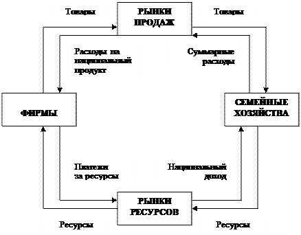 На рынках ресурсов фирмы приобретают рабочую силу, капитал и природные ресурсы. Денежные платежи за это включают зарплату, %-й доход и ренту. Эти потоки непрерывны, товар постоянно обменивается на деньги, т.е. Т-Д, а деньги на товар: Д-Т. Первый поток = продукты, которые носят название национальный продукт (НП). Второй поток = национальный доход (НД) = ∑ всех доходов = зарплата + %-й доход + рента + прибыль. Эти два потока всегда равны между собой: что произведено и продано, то оценено в денежных единицах: НП = НД.