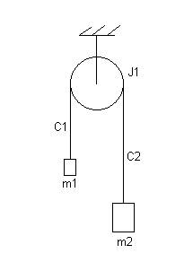 Здесь источники V1 и M1 представляют трансформаторное взаимодействие поступательной подсистемы с массой m1 и вращательной, а источники V2 и M2 - взаимодействие поступательной подсистемы с массой m2 и вращательной.