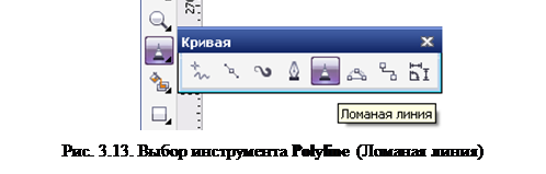 Инструмент Polyline (Ломаная линия) панели инструментов Curve Flyout (Кривая), показанный на рис. 3.13, предназначен для создания прямых линий, ломаных линий и автокривых, подобных тем, которые можно создавать инструментом Freehand (Свободная форма). Инструмент Polyline (Ломаная линия) отличается от инструмента Freehand (Свободная форма) не только видом указателя мыши ( Как и инструментом Freehand (Свободная форма), инструментом Polyline (Ломаная линия) можно создавать прямолинейные сегменты под углом с фиксированным значением. Для этого нужно создавать сегменты с одновременно нажатой клавишей Ctrl. Напомним, что значение изменения угла поворота сегментаопределяется параметром Constrain angle (Дискретность угла) в диалоговом окне Options (Параметры) (комбинация клавиш Ctrl + J) на странице Workspace ► Edit (Рабочее пространство ► Изменить). Аналогично инструментам Freehand (Свободная форма) и Bezier (Безье), инструментом Polyline (Ломаная линия) можно продолжить рисование новых сегментов любой незамкнутой кривой, как показано на рис. 3.8. Это позволяет создать часть кривой, затем ее отредактировать, а потом продолжить рисование инструментом Polyline (Ломаная линия).