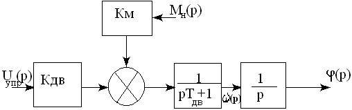 Передаточная функция, структурная схема двухфазного асинхронного исполнительного двигателя.