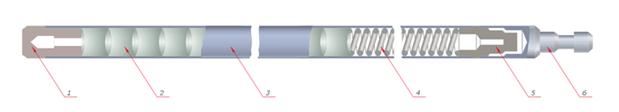 Устройство. Устройство твэла реактора РБМК: 1 — заглушка; 2 — таблетки диоксида урана; 3 — оболочка из циркония; 4 — пружина; 5 — втулка; 6 — наконечник
