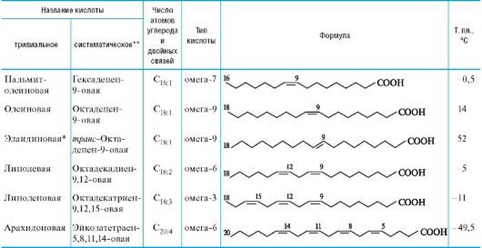 Карбоновые кислоты, наиболее часто встречающиеся в составе жиров:
