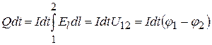 Виділимо у провіднику ділянку між точками 1 і 2. Якщо сила струму у провіднику становить Робота електричних сил, що виконується при протіканні струму, дорівнює