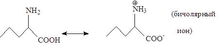 В соответствии со значение рH среды, имеется такая ее кислотность, когда аминокислота существует в виде бинолярного иона, т.е не реагирует на электрический ток, не движется ни к аноду ни к катоду при приложение к раствору электрического тока. Такое значение и рH называется изоэлектрической точкой аминокислоты и используется при разделение аминокислот методом электрофореза, потому что изоэлектрическая точка для каждой аминокислоты – это строго индивидуальное значение. Имея в молекуле COOH и NH2 группы, аминокислота взаимодействует с участием и той и другой