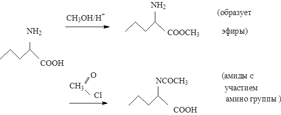 Химические свойства. Аминокислоты содержат основную аминофункцию и кислотную карбоксильную функцию, поэтому они являются амфотерными соединениями