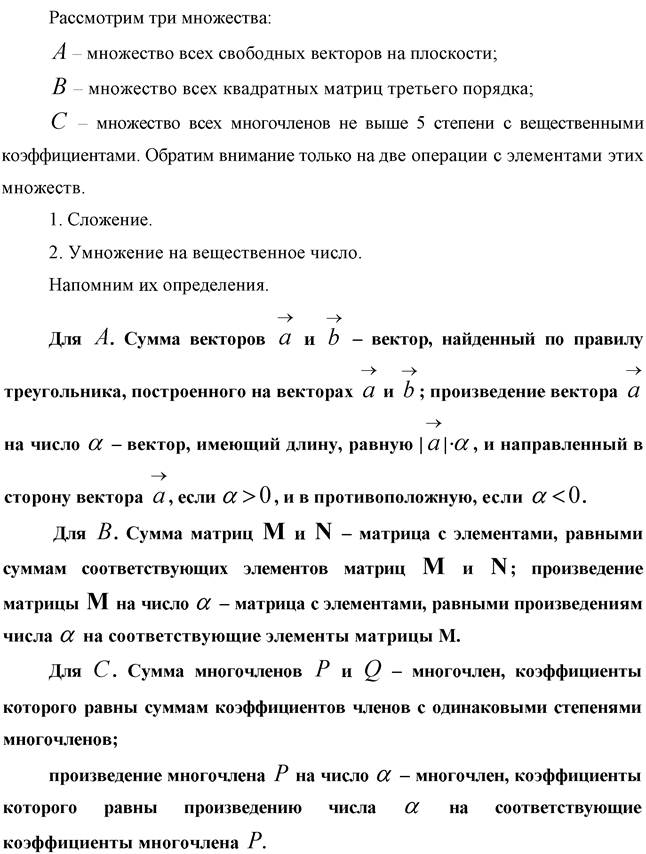 Поскольку операции над матрицами сводятся к операциям над числами, то справедливость аксиом очевидна. Если элементы матриц искаляры В дальнейшем мы встретимся и с другими примерами линейных пространств.