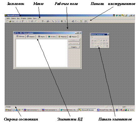 Внешний вид окна Access: