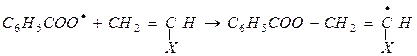 б) біріншілік радикалдың мономер молекуласымен әрекеттесуі: