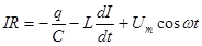 мұндағы а(t) қандай да бір шаманың амплитудасы (q, U, немесе І). Өшудің логарифмдік декременті амплитуда е есе азаятын уақыт ішіндегі Ne тербеліс санына кері екенін ескертеміз: l=1/Ne. (3.49) өрнек (b=R/2L) мәнін қойып және Т-ның орнына 2p/w ауыстырып, l үшін мына l = 2pR/2L w = pR/Lw (3.50) өрнегін аламыз. Жиілік w, демек l контурдың L,C,R параметрлерімен анықталады. Сонымен, өшудің логарифмдік декременті контурдың сипаттамасы болып табылады. Еріксіз тербеліс болуы үшін, сырттан жүйеге периодты түрде әсер ету керек. Ол үшін контурдың элементтеріне тізбектей айнымалы ЭҚК немесе контурды үзіп оған айнымалы U=Um×coswt (3.51) кернеу беру керек. Бұл кернеуді өздік индукцияның ЭҚК -не қосу керек. Нәтижесінде Ом заңы мына