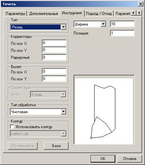 1 2 3 4 5 6 7 8 9 10 11 12 13 14 15 16 1 – инструмент (назначение и корректировка инструмента); 2 – начало цикла (определение начала цикла в ПСК); 3 – безопасная позиция (задание безопасной позиции); 4 – плоскость холостых ходов; 5 – перезахват (задание перезахвата для прессов с ЧПУ); 6 – стоп (осуществление программного останова станка и УП с выключением шпинделя); 7 – останов (осуществление программного останова станка и УП без выключения шпинделя); 8 – отвод (перемещение инструмента из текущего положения в безопасную позицию); 9 – аппроксимация (задание максимального значения погрешности при аппроксимации кривой); 10 – поворот (поворот оси шпинделя вокруг 1, 2, 3-х осей вращения текущей системы координат); 11 – комментарий (создание комментария); 12- вызов программы (выполнение программы); 13 – вызов цикла (выполнение цикла в заданной точке); 14 – команда пользователя (произвольная технологическая команда, параметры которой определяются пользователем); 15 – Ручной ввод (ручной ввод CL DATA); 16 – Контрольная точка. Технологическая команда может быть задана в любой момент проектирования обработки. Технологическая команда «Инструмент» Технологическая команда Инструмент устанавливает параметры инструмента, который будет использован в последующих технологических переходах. Как правило, команда Инструмент используется перед вызовом подпрограмм или станочных циклов. Параметры технологической команды Инструмент задаются в диалоге «Инструмент». ADEM CAM позволяет задать геометрические параметры инструмента, корректоры, а также форму режущей части для токарного резца.