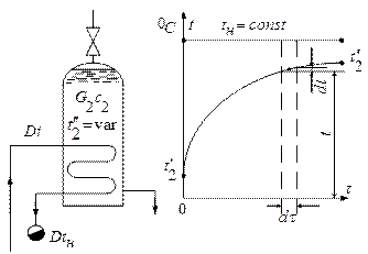 Пар нагревает воду в аппарате и конденсируется при температуре, соответствующей его давлению. Количество воды, нагреваемой в аппарате, G2 постоянно во времени. Поскольку температура конденсации пара Дифференциальные уравнения теплопередачи и теплового баланса для элемента времени