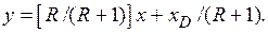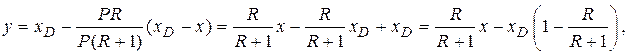 При x = xD y = xD, т.е. рабочая линия укрепляющей части колонны пересекает диагональ с абсциссой xD, что и следовало ожидать, учитывая второе допущение. Обозначим