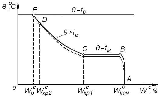 Для анализа процесса сушки, помимо кривых скорости, важно знать также характер изменения температуры материала θ в зависимости от его влажности w, так как с изменением θ могут изменяться свойства материала.