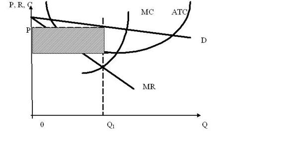 Рис. 11.1 Короткострокова рівновага фірми, що максимізує економічний прибуток в умовах монополістичної конкуренції