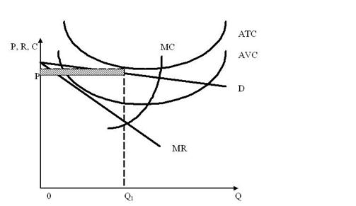 2. Короткострокова рівновага фірми в умовах монополістичної конкуренції. Еластичність кривої попиту фірми залежить від кількості конкурентів на ринку монополістичної конкуренції та ступеня диференціації товару в галузі. Чим більша кількість конкурентів та слабкіша диференціація товару, тим еластичніша крива попиту кожного з них. Чим більший нахил кривої попиту на товар монопольноконкуруючої фірми, тим глибша диференціація товару і тим більший вплив може мати ця фірма на ціну товару.