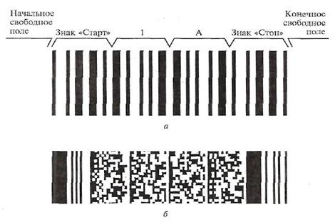 Рис. 2.4. Символы штрихового кода: а — символ штрихового кода линейной структуры; б — символ штрихового кода в многострочных символиках
