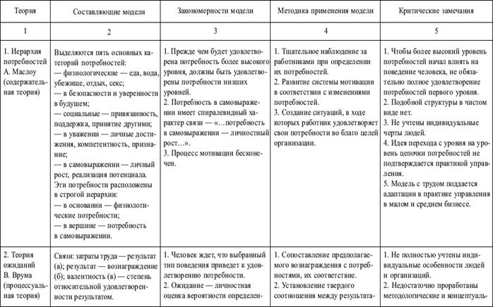 Преимущества и недостатки теорий мотивации представлены в табл. 7.5.