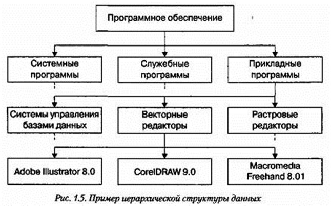 Нерегулярные данные, которые трудно представить в виде списка или таблицы, часто представляют в виде иерархических структур. Подобные структуры также широко применяют в научных систематизациях и всевозможных классификациях. В иерархической структуре адрес каждого элемента определяется путем доступа (маршрутом), ведущим от вершины структуры к данному элементу.