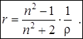 Установлено, что не сам показатель преломления, а некоторая функция от него прямо пропорциональна плотности: f (n) = r ×ρ, где f (n) – некоторая функция показателя преломления; r – коэффициент пропорциональности, называемый удельной рефракцией; ρ – плотность. Согласно формуле Лоренц – Лорентца, эта функция имеет вид: