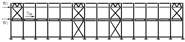 Вертикальные связи между колоннами воспринимают усилия от ветра W1,и W2 действующего на торец здания и продольного торможения кранов Тпр. Элементы крестовых и портальных связей работают на растяжение. Сжатые стержни вследствие большой гибкости выключаются из работы и в расчете их не учитывают. Гибкость растянутых элементов связей, расположенных ниже уровня подкрановых балок не должна превышать 200; для связей выше подкрановых балок – соответственно 300.