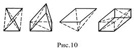 Плоские структуры представляют собой конструкции, образованные из различных систем перекрестных ферм (рис.9) Количество пересекающихся в одном узле ферм, а также их вертикальное или наклонное положение дают разнообразное структурные построения. В каждой структуре можно выделить свой многократно повторяющийся объемный элемент, называемый кристаллом (рис.10).