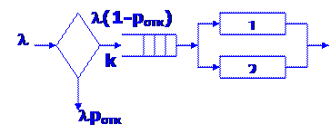 Задача № 2. Поток сообщений в ВС простейший. Среднее время между сообщениями 12 сек. Обработка осуществляется на 2-х ЭВМ, время обработки – экспоненциальное 1. Графическая модель в терминах СМО. 2. Граф состояния. 3. Расчёт при 4. Расчёт при 5. Графическое решение.