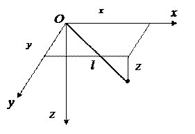 т.е. в виде уравнений поверхностей, линией пересечения которых является траектория точки. Если точка принуждена оставаться в некоторой области пространства, то уравнение свяиь аналитически задаётся в виде неравенства. Например, если в вышеуказанном случае (рис.11.1) заменить стержень нитью, уравнение связи будет иметь вид:
