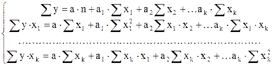 a0, a1, …, ak – параметры модели (коэффициенты регрессии); εj – случайная величина (величина остатка).