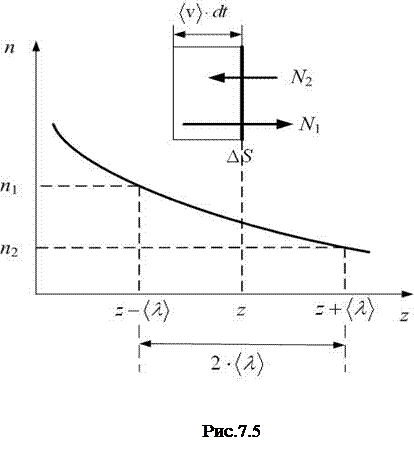 Пусть концентрация уменьшается с координатой Z по какому-либо закону (рис.7.5). Пусть слева от площадки концентрация больше, чем справа: .