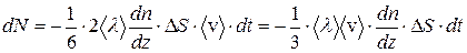 Аналогично, число молекул, пересекающих площадку справа налево тот же промежуток времени, равно: