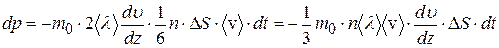Импульс молекул, находящихся слева от площадки, связанный с направленным движением слоёв газа, равен