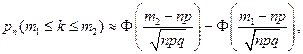число «успехов» оказалось не более m2 и не менее m1