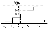 F(x) = P (X<x), то есть функция распределения случайной величины определяется как вероятность события, заключающегося в том, что случайная величина X принимает значение меньше x. Для случайной величины, заданной таблицей 5.1, F(x) определяется формулой: