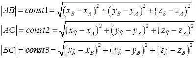 Лекция № 4 Знать движение тела – это означает знать его положение в пространстве в любой момент времени. Положение твёрдого тела в пространстве определяется положением трёх его точек, которые не лежат на одной прямой. Положение каждой точки в пространстве задаётся тремя скалярными параметрами – координатами. Следовательно, положение тела можно задать девятью параметрами. Однако, согласно определению абсолютно твёрдого тела, расстояния между его точками не меняются в процессе движения, т.е.