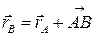 Определение. Поступательным называется такое движение твердого тела, при котором любая прямая, жестко скреплённая с телом, остаётся параллельной своему первоначальному положению в каждый момент времени. Поступательно движутся педали у велосипеда относительно его рамы, поршни в цилиндрах двигателя внутреннего сгорания относительно цилиндров, кабины колеса обозрения относительно Земли в парках. Траектории точек у поступательно движущегося твёрдого тела могут быть не только прямыми, но и любыми кривыми, в том числе и окружностями. Например, все точки спарника, который соединяет пальцы равных кривошипов, описывают в процессе движения окружности. Свойства поступательного движения характеризует следующая теорема. Теорема: При поступательном движении твердого тела траектории, скорости и ускорения всех точек тела одинаковы. Доказательство: Выберем в теле две произвольные точки А и В. Положения этих точек зададим их радиус–векторами, которые связаны между собой условием: