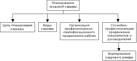 Ключевой термин Требования к знаниям и умениям Цели изучения темы Тема 3.2. Планирование трудовой карьеры · ознакомление с планированием трудовой карьеры на предприятии. Студент должен знать: · типы карьеры; · основные этапы планирования карьеры. Студент должен уметь использовать знания в своей профессиональной деятельности. Ключевой термин: планирование трудовой карьеры. Планирование трудовой карьеры – это деятельность по управлению персоналом, направленная на наиболее рациональное использование трудового потенциала работника и создание условий для самореализации его как личности. · цель планирования карьеры; · виды карьеры; · организация профессионально-квалификационного продвижения рабочих; · служебно-профессиональное продвижение специалистов и руководителей; · формирование кадрового резерва. Структурная схема терминов