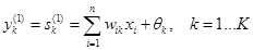 где xik – i -й компонент k -го эталона. и пороги их активационных функций: