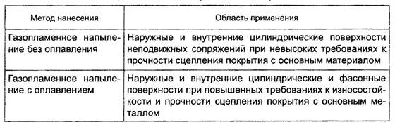 В зависимости от используемого метода напыления применяются соответствующие порошковые материалы (см. табл.).