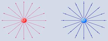 Силовые линии кулоновских полей положительных и отрицательных точечных зарядов изображены на рисунке 1.4.