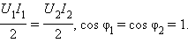 Знак минус означает, что напряжения u 1 и u 2 находятся в противофазе, также как и токи J 1 и J 2 в обмотках. Поэтому фазовый сдвиг φ1 между напряжением u 1 и током J 1 в первичной обмотке равен фазовому сдвигу φ2 между напряжением u 2 и током J 2 во вторичной обмотке. Если нагрузкой вторичной обмотки является активное сопротивление R н, то φ1 = φ2 = 0. Для амплитудных значений напряжений на обмотках можно записать: