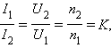 то есть токи в обмотках обратно пропорциональны числу витков. Принимая во внимание, что U 2 = R н I 2, можно получить следующее соотношение