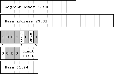 Формат дескриптора сегмента кода/данных (code or data segment descriptor, это официальное название) таков: