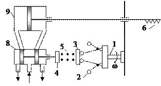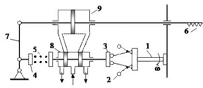 Рис. 10.3. Конструктивная схема астатического регулятора частоты вращения непрямого действия. 1-5 см. подписи к рис. 10.1; 8 – управляющий золотник; 9 - серводвигатель