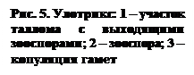 3. Типичный представитель Ulothriх – улотрикс (рис. 5). Обитает в быстро текущих водах у поверхности воды: нити прикреплены к стенкам набережных, к подводным камням, сваям. Слоевище улотрикса состоит из неразветвленных нитей, которые в начале роста прикрепляются к субстрату ризоидом в виде вытянутой базальной клетки. Клетки нитей цилиндрические. Хлоропласт в виде незамкнутого кольца, окружающего весь протопласт или только часть его. Вегетативное размножение осуществляется фрагментацией. При половом размножении в нитях точно таким же способом как зооспоры, образуются гаметы.