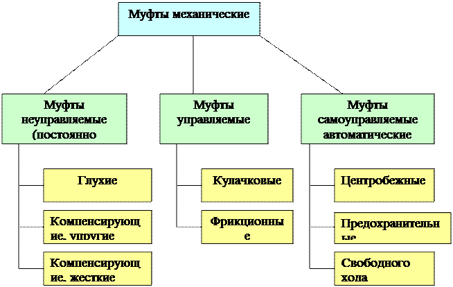 Устройства для соединения концов валов, а также валов с расположенными на них деталями, в технике называют муфтами. Рассматриваем только механические муфты. В современном машиностроении применяют большое количество муфт, различающихся по принципу действия и управления, назначению и конструкции. Классификация муфт
