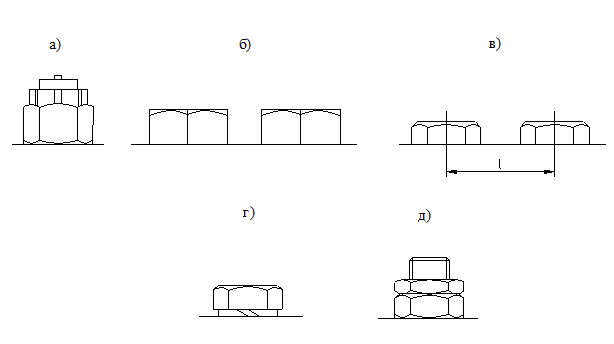 В машинах, где действуют циклические нагрузки, для всех винтов и гаек должны предусматриваться средства против самоотвинчивания. В порядке убывающей надежности применяются для этой цели: корончатые гайки со шплинтом (рис.15а), отгибные шайбы (рис. 156), завязывание проволокой (рис. 15в), пружинные шайбы (Гровера) (рис. 15г), контргайки (рис.15в) и другие способы.