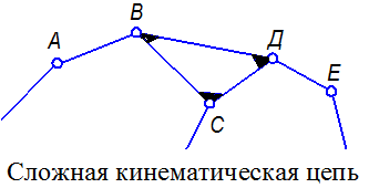 Рис. 1.2 Кинематическая пара, которая образована звеньями, соприкасающимися только по линии или в точке, называется высшей кинематической парой. Кинематической цепью называется связанная система звеньев, образующих между собой кинематические пары. Кинематические цепи делятся на простые и сложные. Простой кинематической цепью называется такая цепь, у которой каждое звено входит не более чем в две кинематические пары. Сложной кинематической цепью называется цепь, в которой имеется хотя бы одно звено входящее более чем в две кинематические пары.