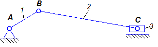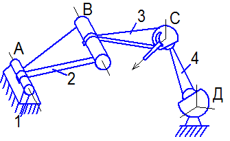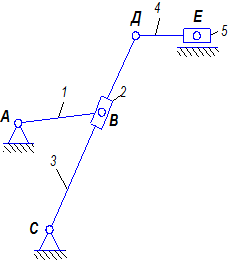 Кинематической схемой механизма называется его изображение в выбранном масштабе с применением условных обозначений, установленных ГОСТом, звеньев и кинематических пар. Схема позволяет определить движение ведомых звеньев по заданному движению ведущих. АВ – ведущее звено, т.е звено движение которого задано.