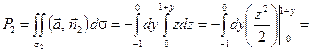 2) Уравнение поверхности : ; единичная нормаль ; . – плоская область в плоскости , являющаяся треугольником, ограниченным координатными осями и прямой (рис. 11).
